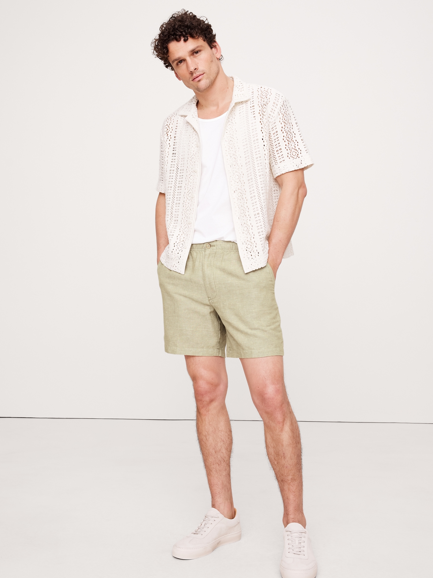 We kept the fit of these pull-on shorts easy, but added a fully functional fly—crafted from premium linen and cotton. Iron or skip for a look that reads ready-for-vacation.