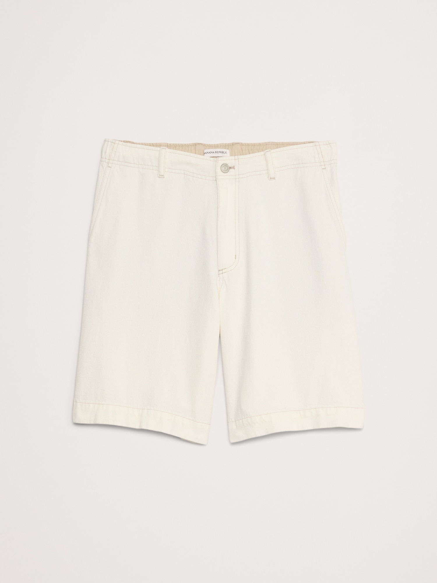 An easy Bermuda short, just in time for summer. These are cut from a soft denim fabric we fell hard for because it looks like the best vintage pieces. Plus, we added a hidden elastic and interior drawstring to the waistband for a custom fit.