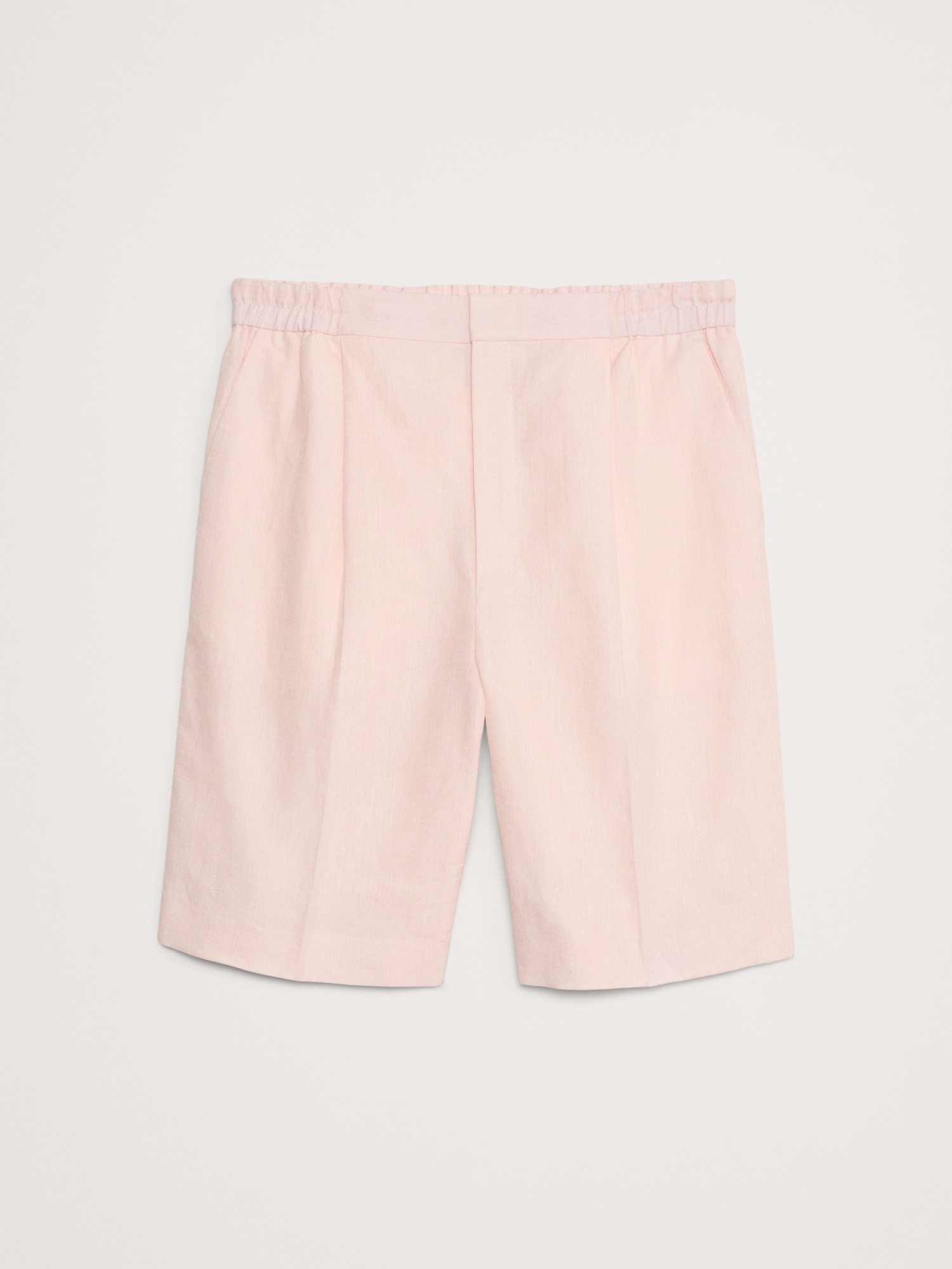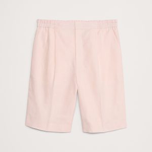 Cut from 100% linen—seen here in a soft délavé pink—these tailored shorts have an elastic waistband at back and a fully functional fly. Try it with the matching suit jacket—hello, wedding season.