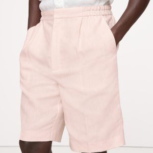 Cut from 100% linen—seen here in a soft délavé pink—these tailored shorts have an elastic waistband at back and a fully functional fly. Try it with the matching suit jacket—hello, wedding season.