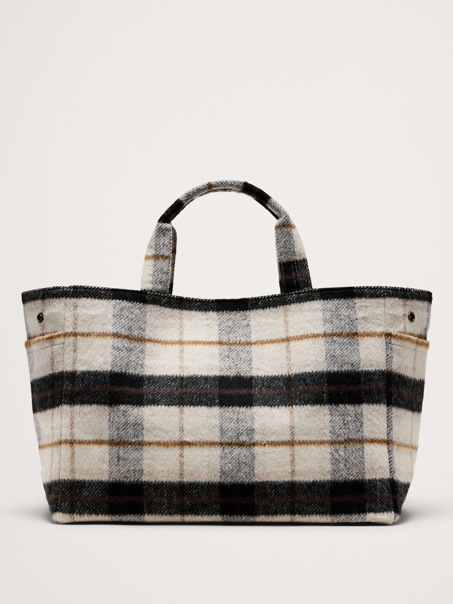 A Hat Attack original, perfectly sized for weekend getaway, in a cold-weather ready plaid fabric. Plus, it has a special strap at the back to slide over your roller suitcase handle.
