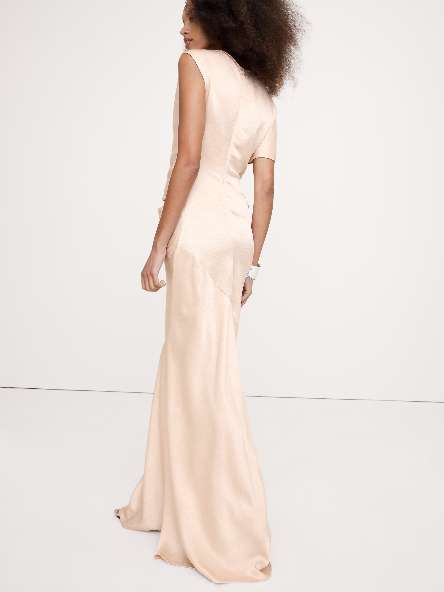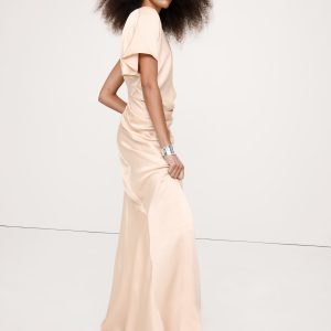 Asymmetrical Hammered Satin Draped Maxi Dress