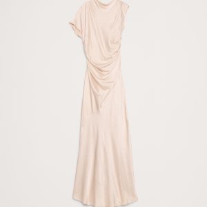 Asymmetrical Hammered Satin Draped Maxi Dress