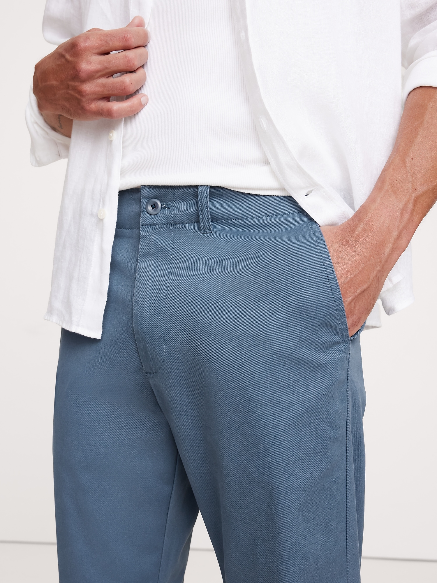 Modeled after a vintage pair of officer’s chinos, we cut this slim-fit pant from a stretchy, organic cotton twill. We added an extra stone wash for a broken-in look and an already-loved feel.