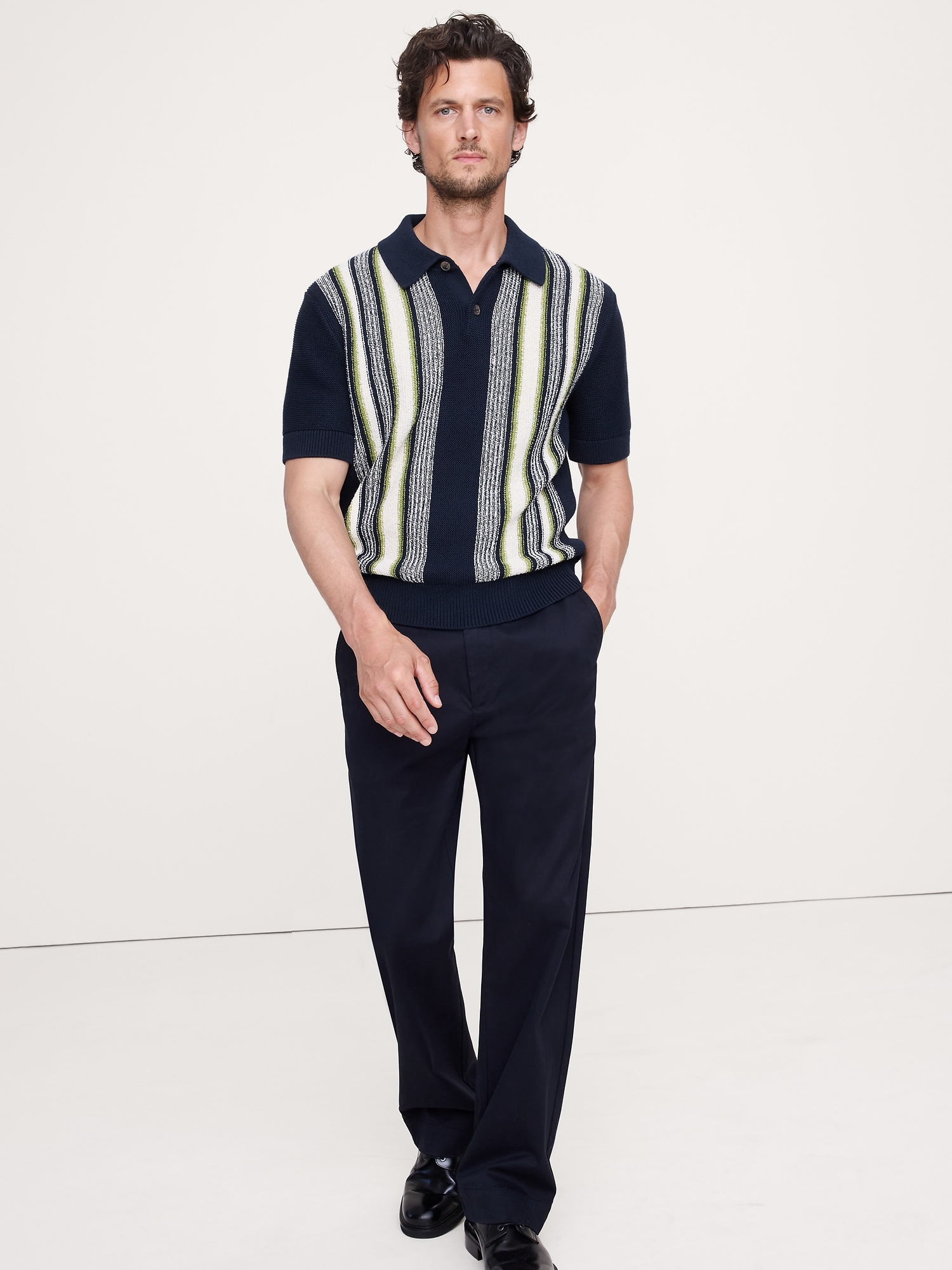 We’re on a mission to make a better-than-vintage sweater polo. Here, in a stretch-cotton, bouclé yarn that’s a little heavier to support you as the weather cools.