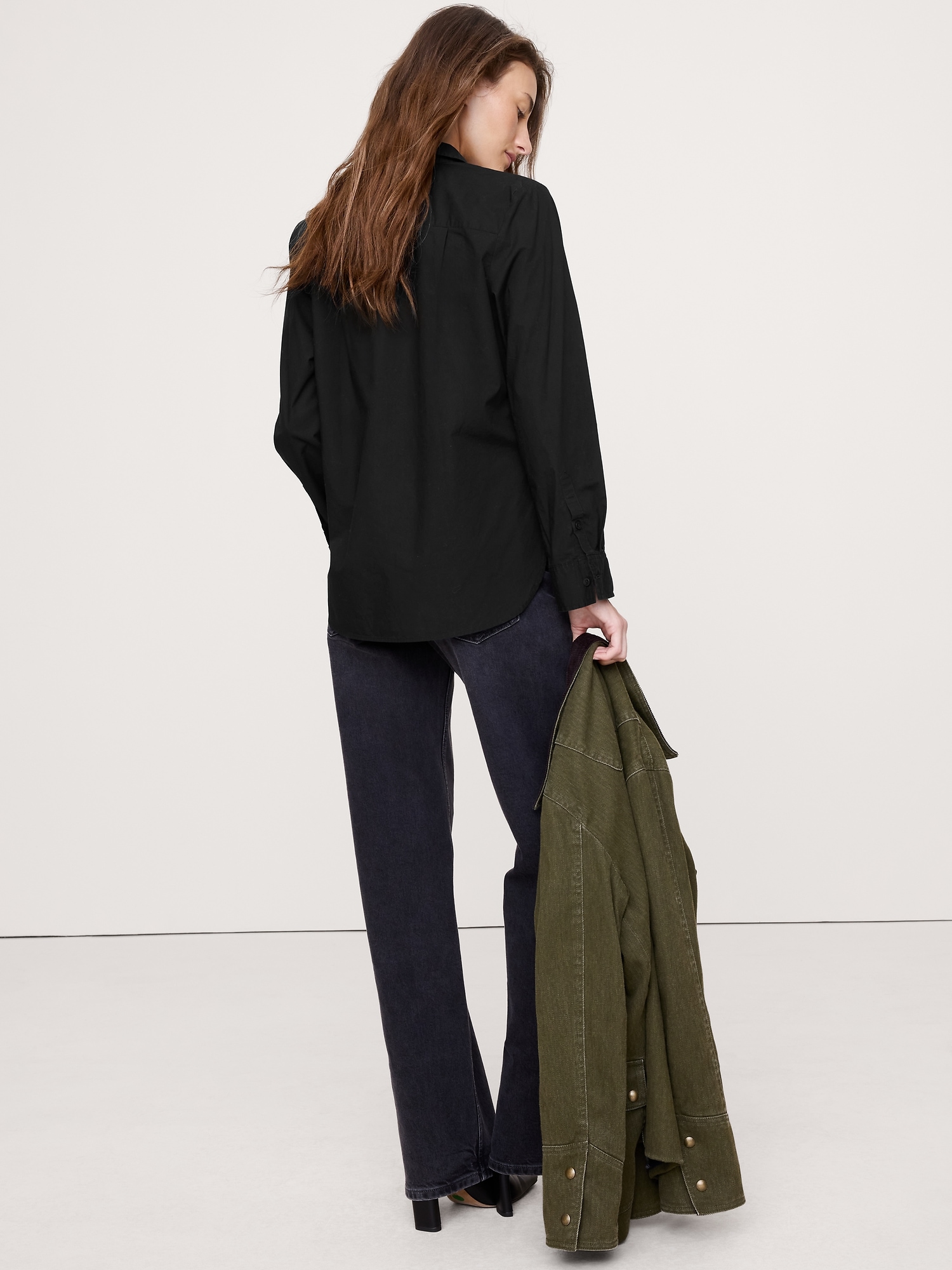 A classic in every sense of the word, we updated the fit of this shirt so it’s boxy and a little short—ideal for playing with proportions. Boxy Fit: A straight and easy fit. Point collar with button front. High-low hem. #826044