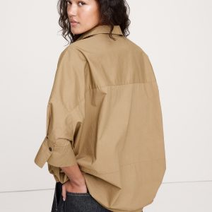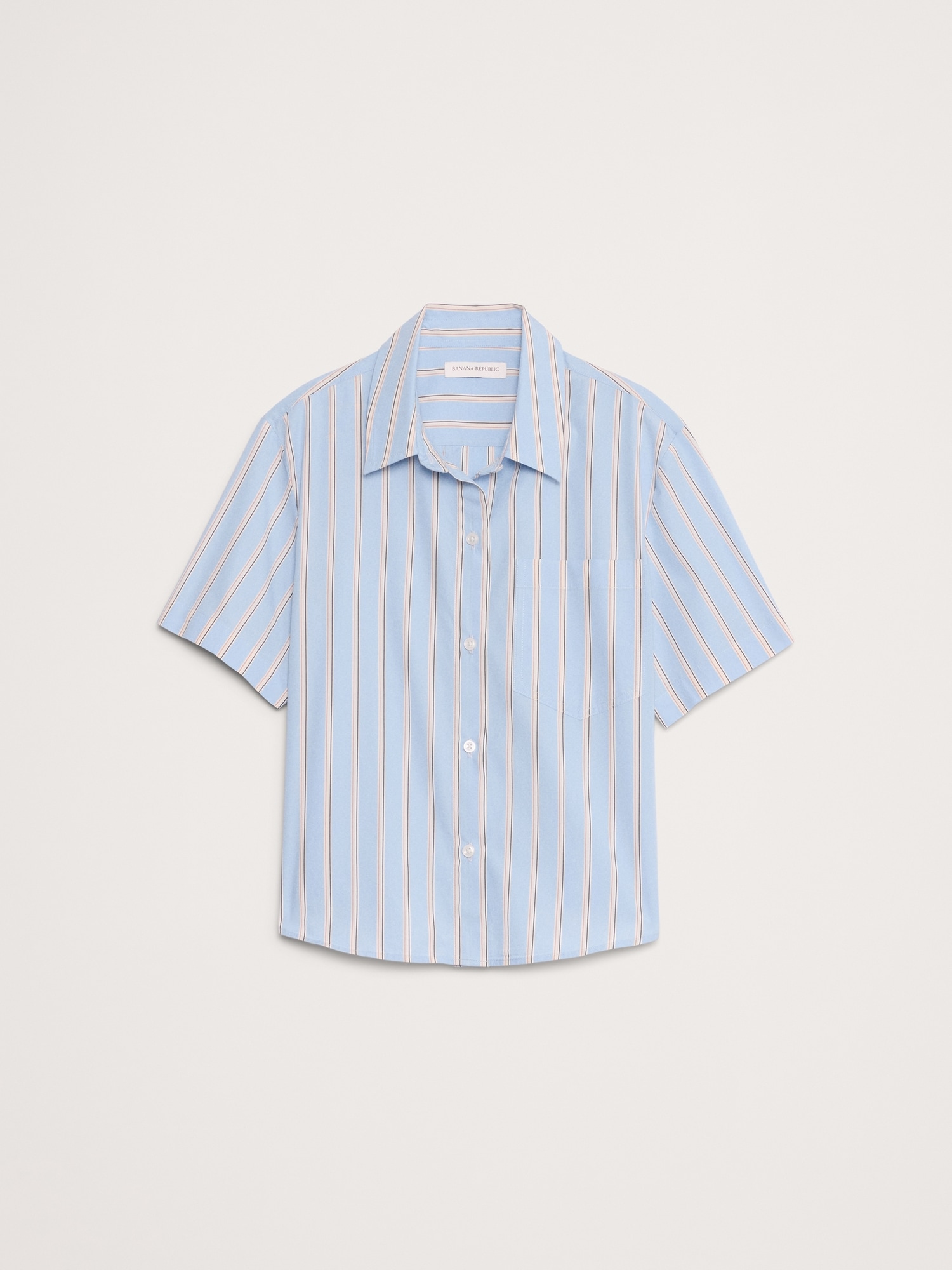 Boxy Cotton Poplin Short-Sleeve Shirt