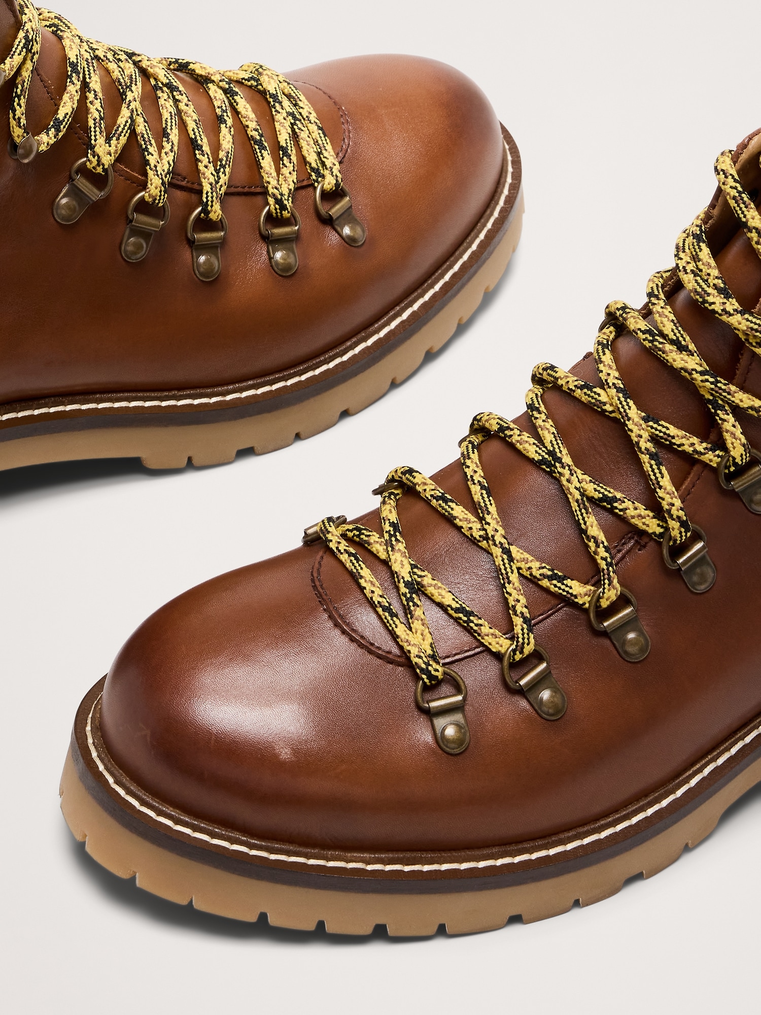 A hiking boot, but make it luxe. We took the style details from a pair of rugged alpine boots, but recreated them in a beautiful burnished leather.