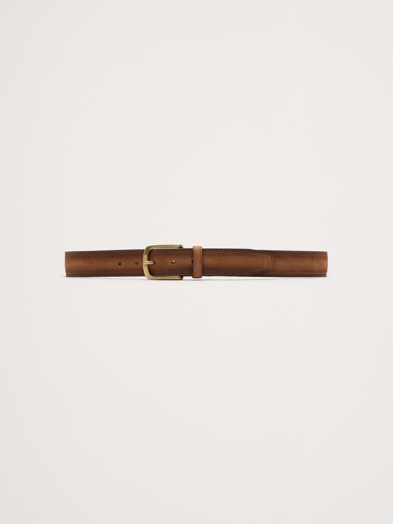 A belt with character, this gorgeous Italian nubuck leather belt has a sturdy, suede-like finish to travel with you on every noteworthy adventure.