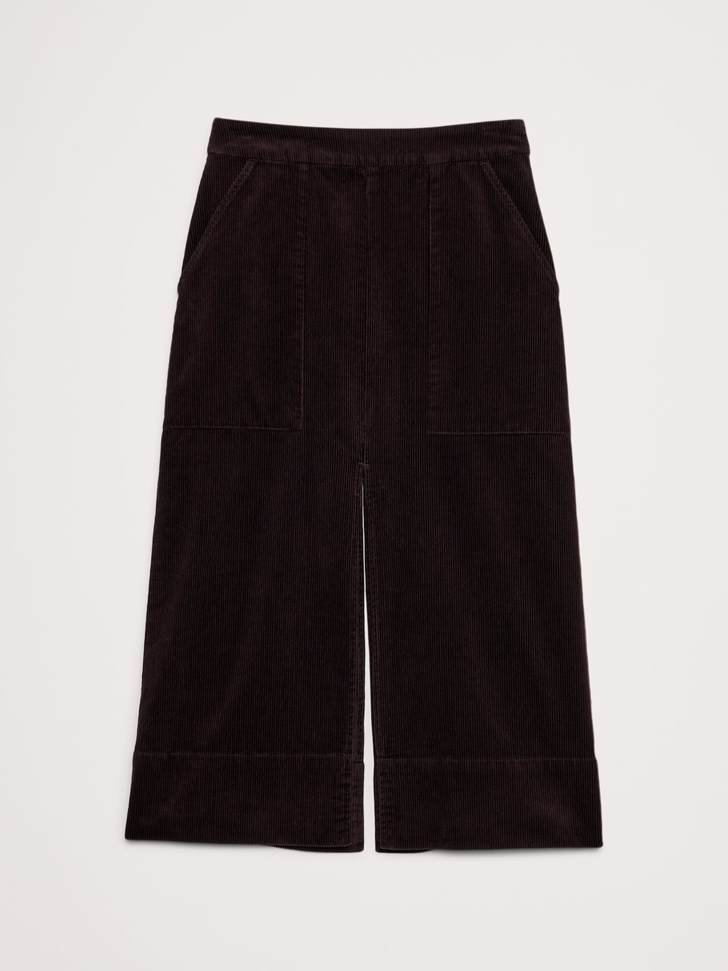 Nothing says cold weather quite like corduroy. Here, we crafted a tailored midi skirt with front and back slits—the better to show off your shoes.