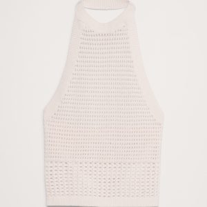 Our take on the season’s sheer trend, this halter top uses a mix of open, mesh-like stitches to mimic the look and feel of true crochet—in 100% cotton. Make it a set with the coordinating skirt.