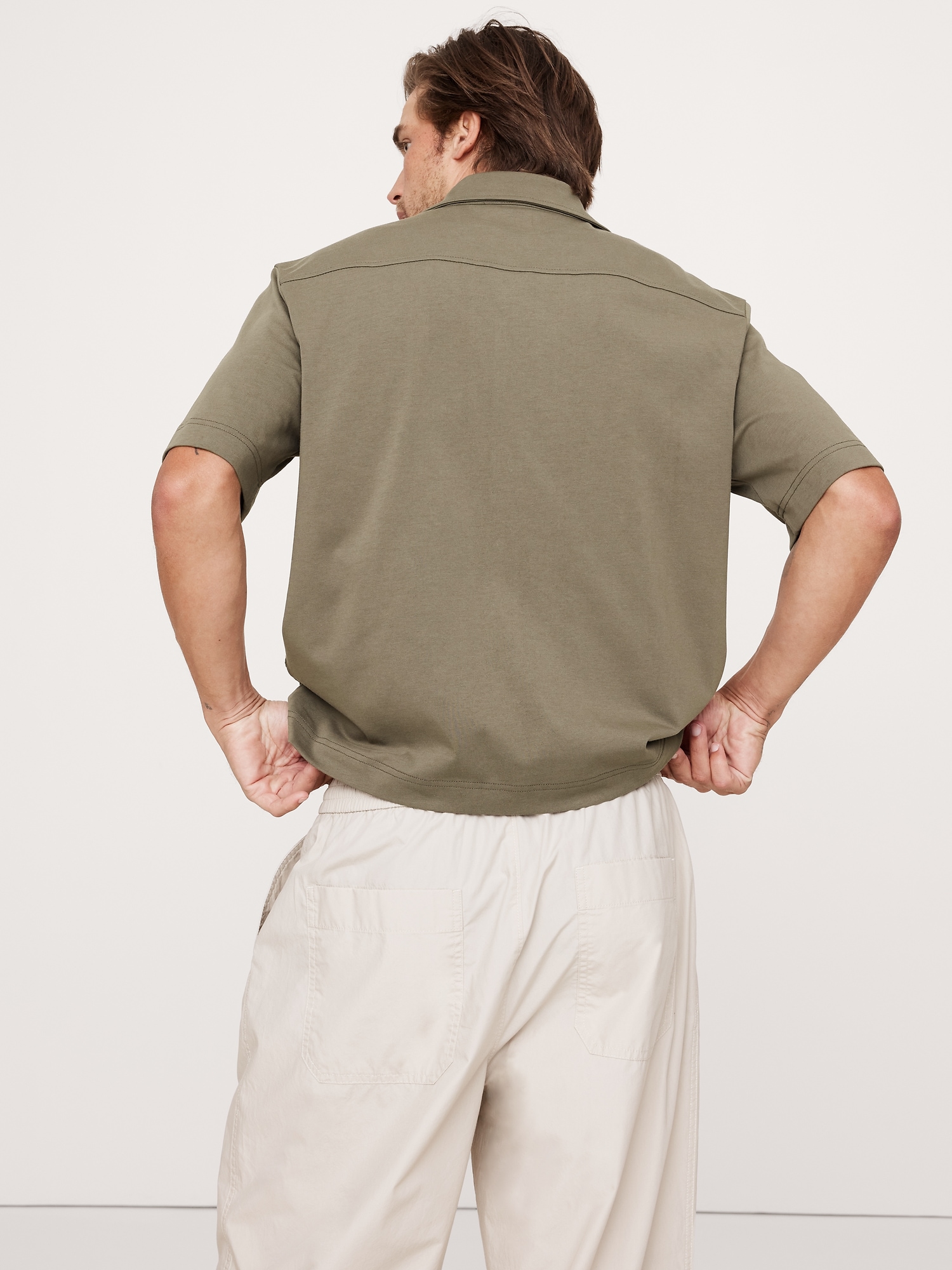 A cross between your favorite polo and a resort shirt, we love the open, airy knit panels of this one—in 100% cotton.