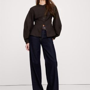 Deconstructed, reconstructed. This balloon-sleeve shirt nods at the season’s corset trend with a sweetheart bodice and corset-inspired panels at the waist—in our 100% cotton poplin.