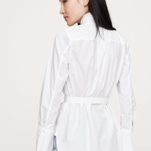 It’s these easy cotton poplin shirts we’re loving right now. This one is tunic length and has an adjustable slider belt to define the waist.