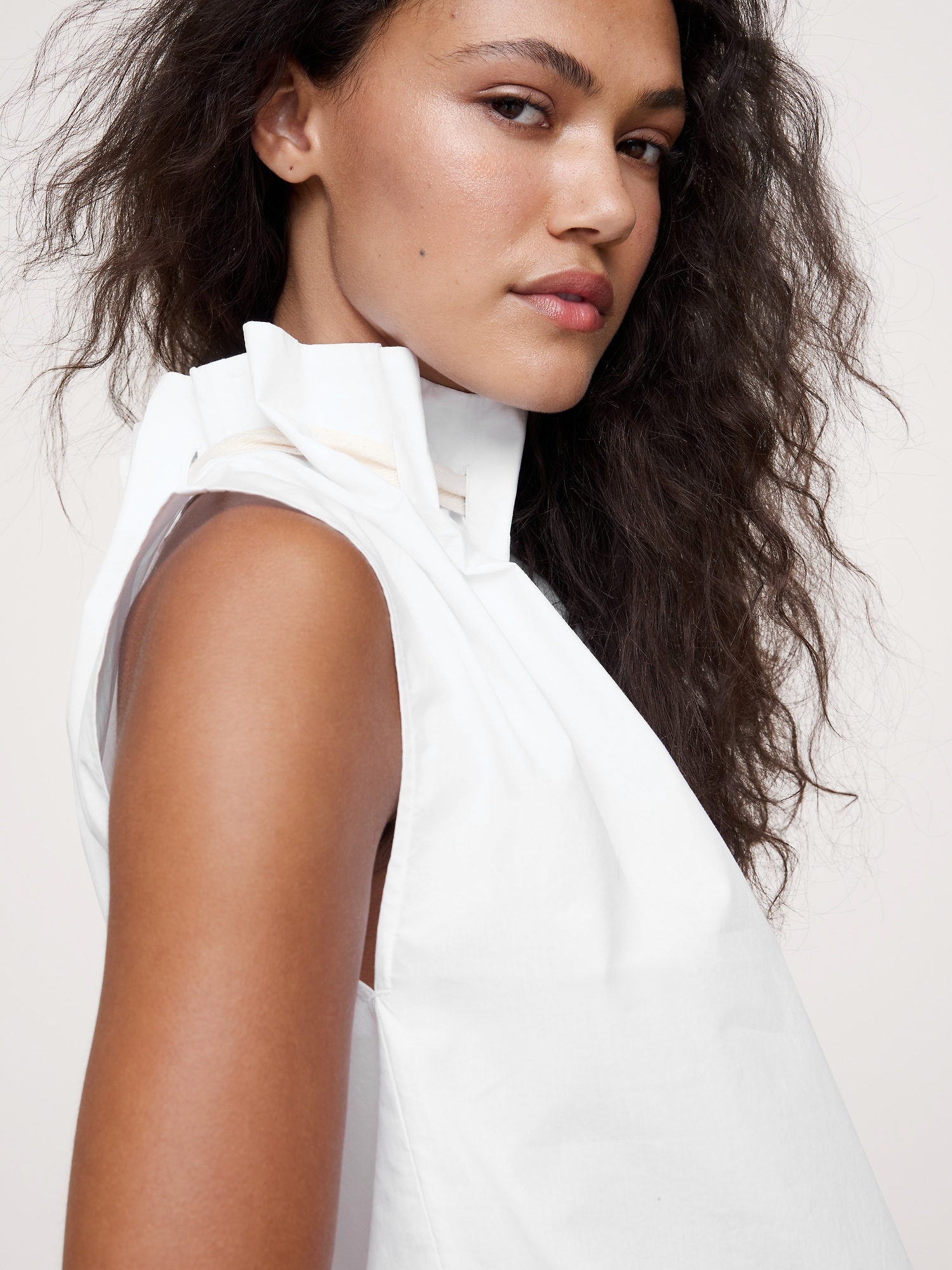 We love poplin because it transcends trends. Here, a cinch-neck top with drawstring detail in premium 100% cotton poplin.