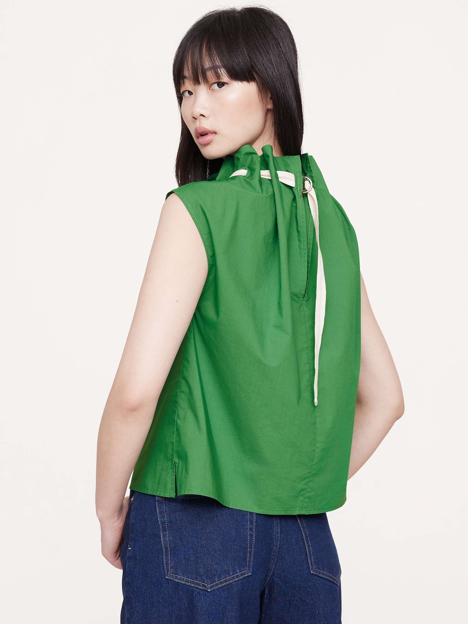 Cotton Poplin Cinch-Neck Top