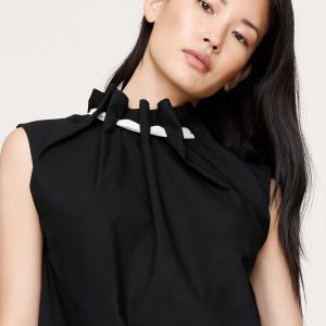 Cotton Poplin Cinch-Neck Top