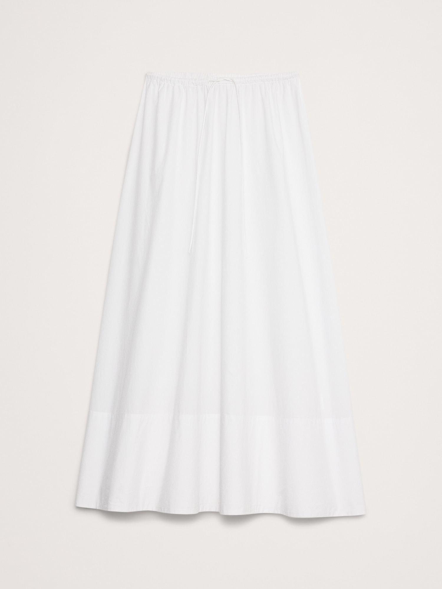 A timeless A-line maxi skirt in premium 100% cotton poplin with an extra-wide hem. Pair it with the matching bubble-hem cropped top to make it a set.