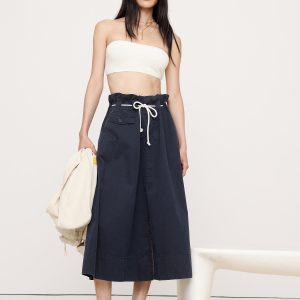 Cotton Poplin Maxi Skirt with Rope Tie