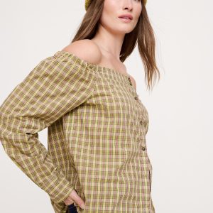 We reimagined the classic button-down shirt in an off-the-shoulder silhouette—in our premium 100% cotton poplin.