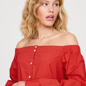 We reimagined the classic button-down shirt in an off-the-shoulder silhouette—in our premium 100% cotton poplin. Classic Fit: A straight and easy fit. Off-shoulder neckline. Button front. Unlined. #826022