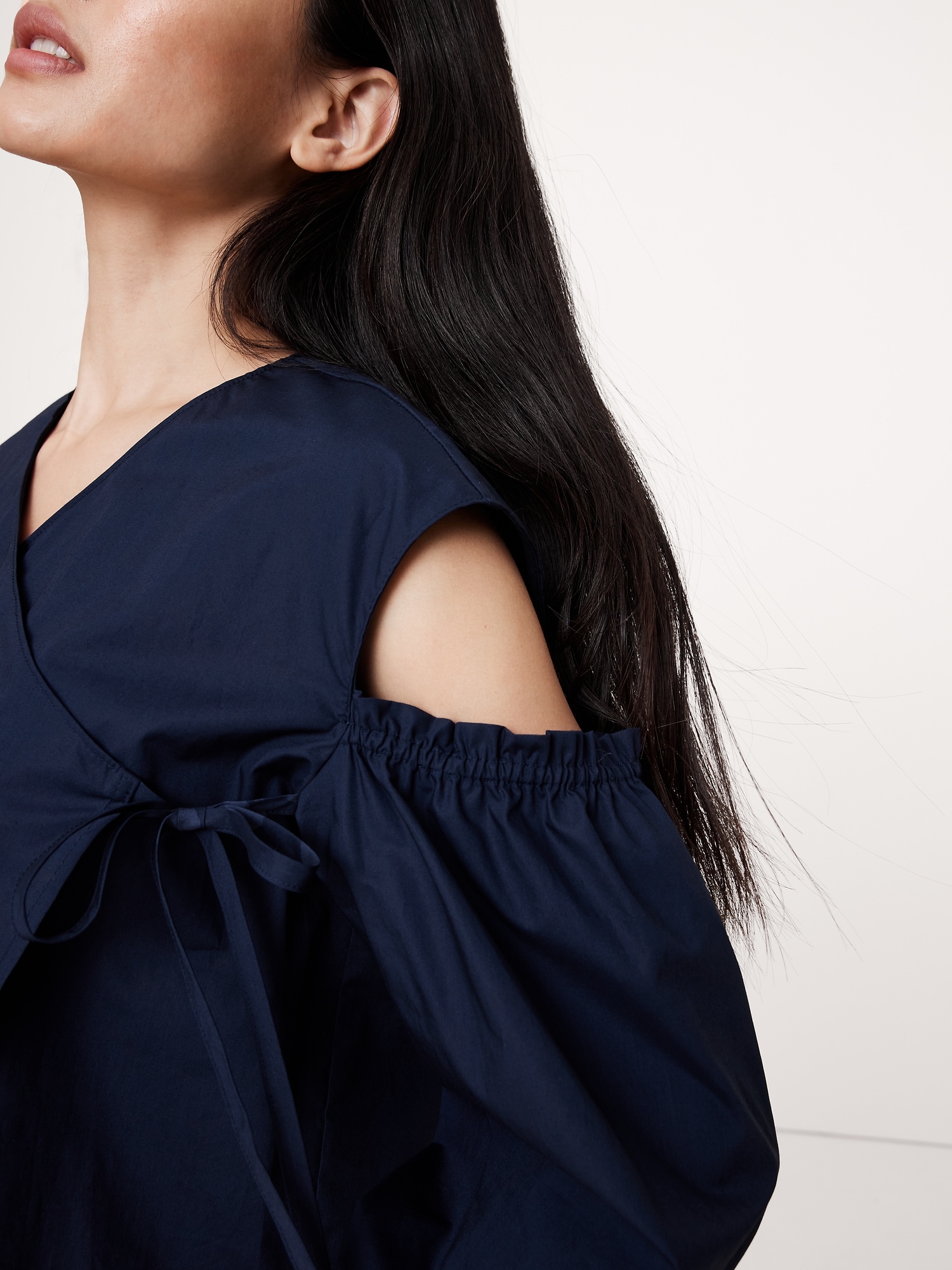 We cut this easy top with a wrap front and cut-out details—in our premium 100% cotton poplin.