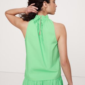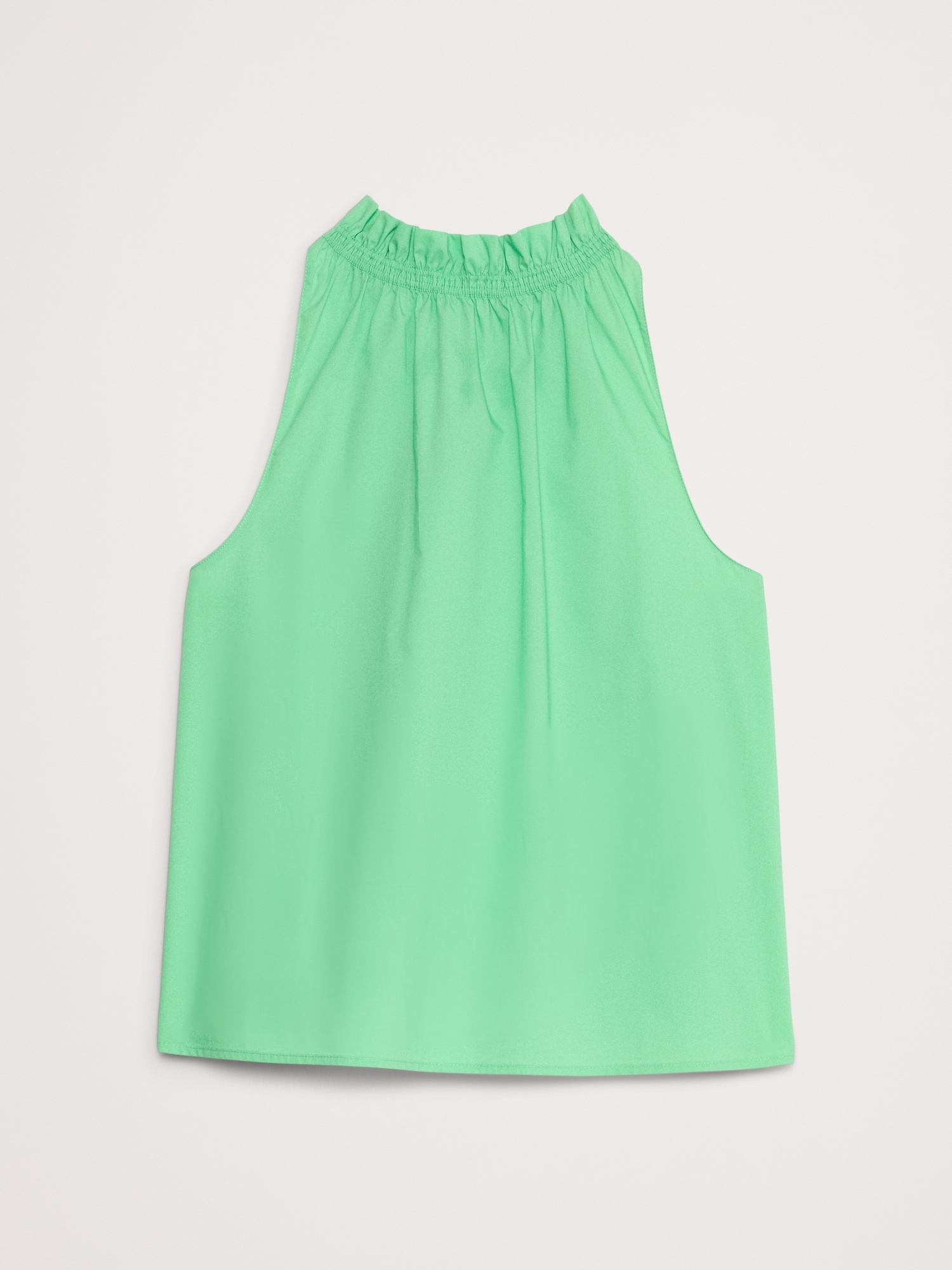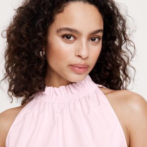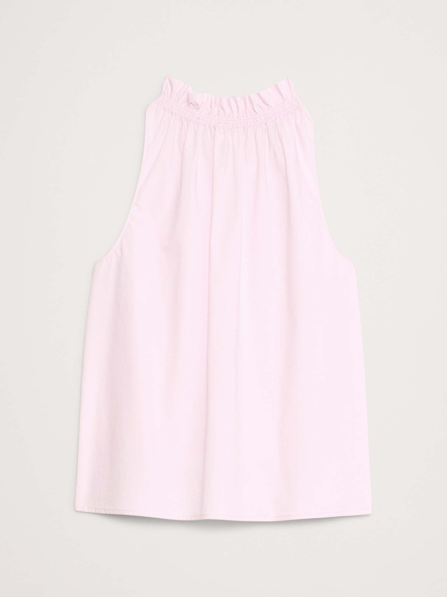 We love poplin because it transcends trends. Here, a ruffle-neck top in premium 100% cotton poplin. Pair with the matching smocked maxi skirt to make it a set.
