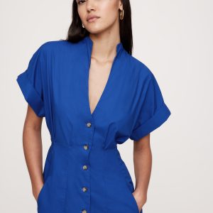 We can’t decide what we love most about this dress: the low, collarless neckline or the seamed accents that gather into pleats that define the waist. We cut it in our signature cotton poplin so you can style it now with ankle boots and an oversized shirt jacket and wear it later with sandals and a big beach hat.