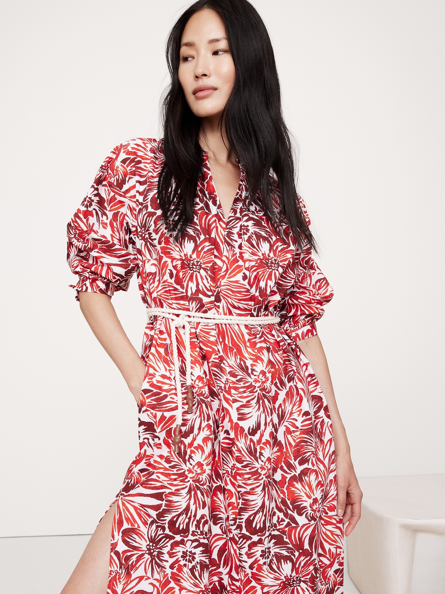 Cotton Poplin Split-Neck Shirt Dress