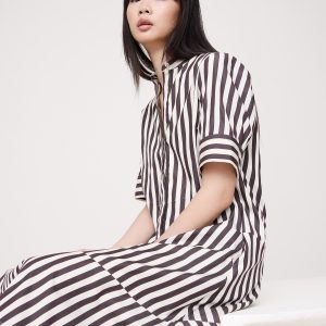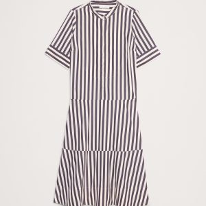 Cotton Poplin Tuxedo-Front Midi Dress