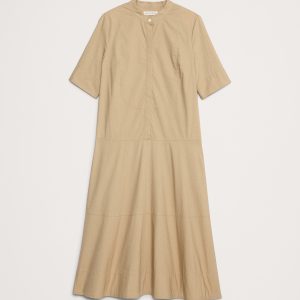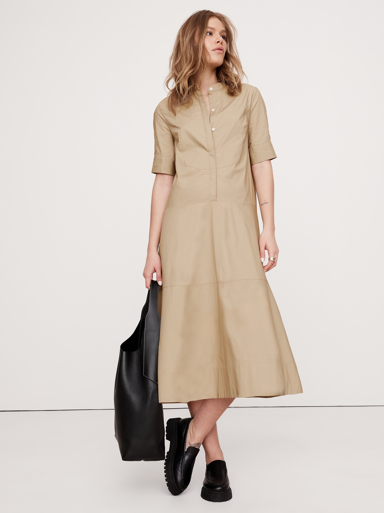 Cotton Poplin Tuxedo-Front Midi Dress