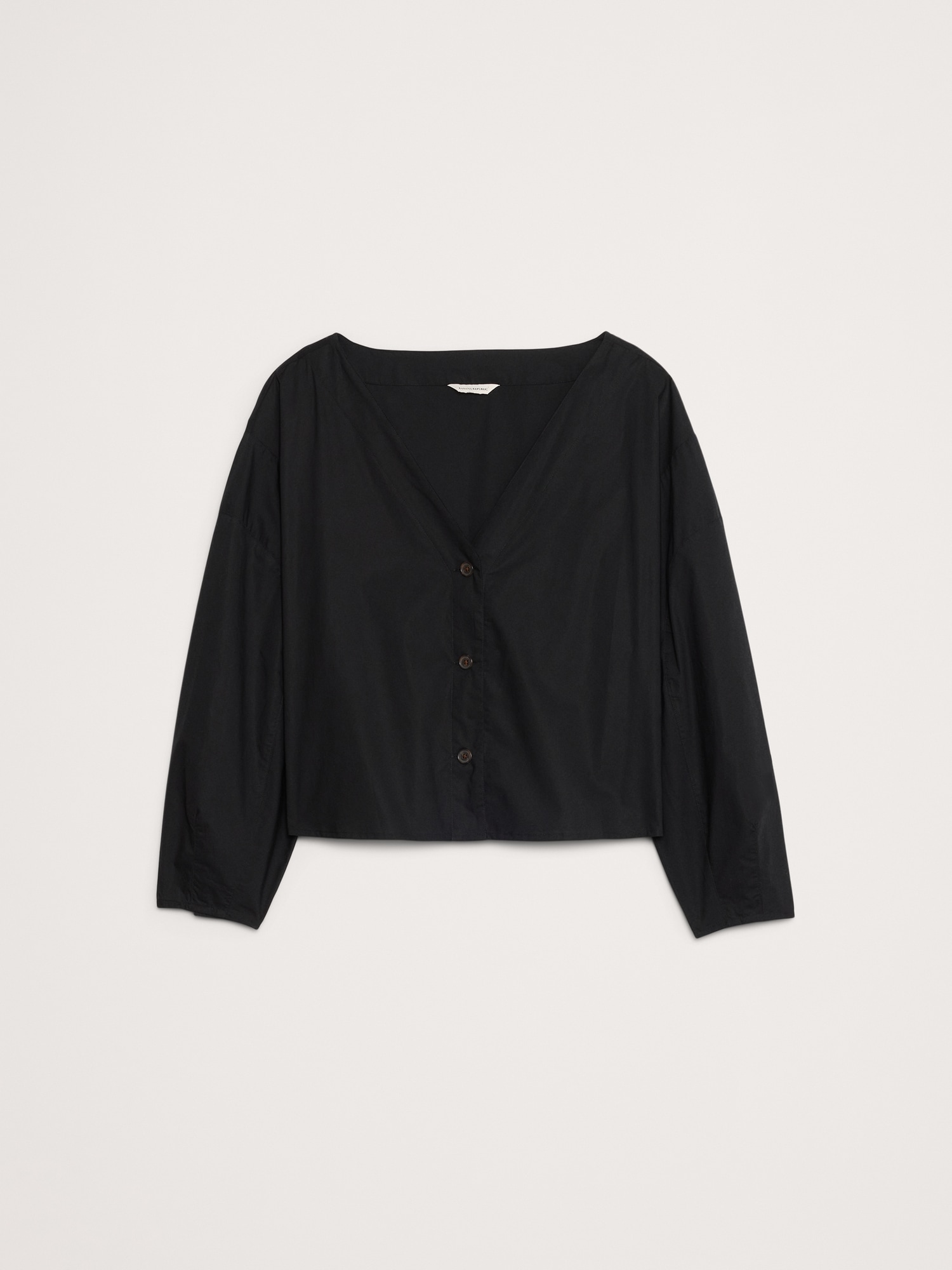 Button this cotton poplin top all the way up or leave it slightly open and style it off the shoulder for an at-ease effect.