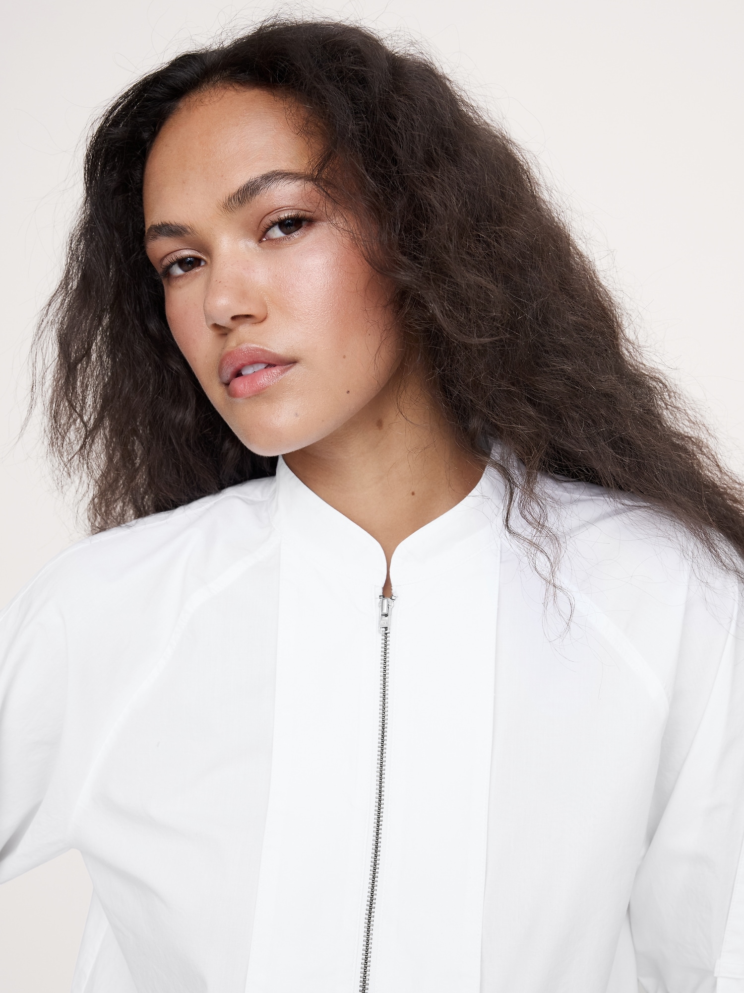 A classic popover, with a utilitarian twist thanks to a zip-front placket, banded collar, and roll-tab sleeves with clip hardware—in our 100% cotton poplin.