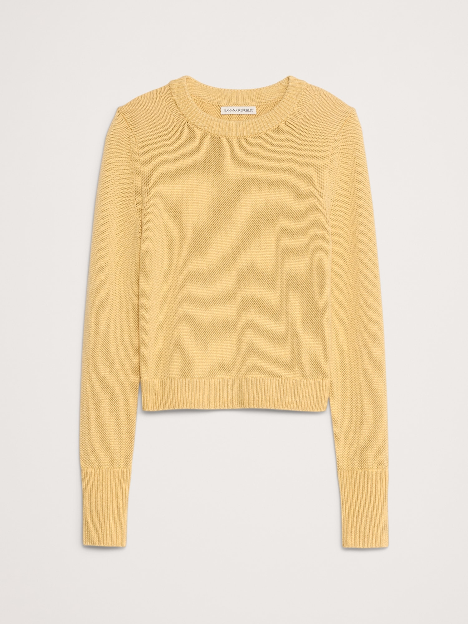 Meet the sweater we can’t stop wearing. This classic crew-neck sweater has a not-too-tight fit and is cut from our softest blend of cotton and silk.