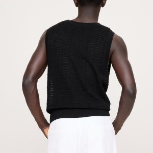 Our take on the season’s mesh tank trend, this cotton tank has an open, geometric pattern in 100% organic cotton.