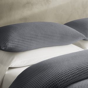 Luxurious cotton, soft and snuggly, is textured with raised ridges that are expertly woven for beautiful, honeycomb dimension in this exquisite waffle-weave duvet cover.