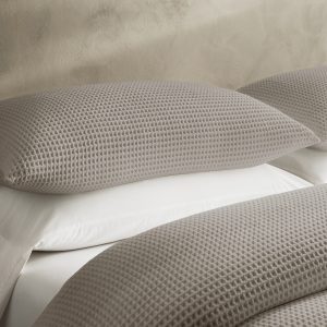 Luxurious cotton, soft and snuggly, is textured with raised ridges that are expertly woven for beautiful, honeycomb dimension in this exquisite waffle-weave duvet cover.