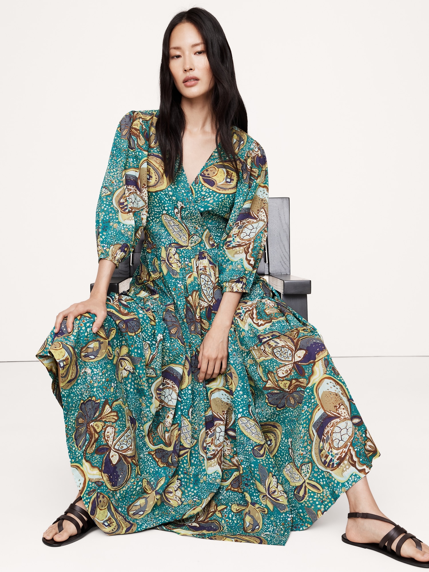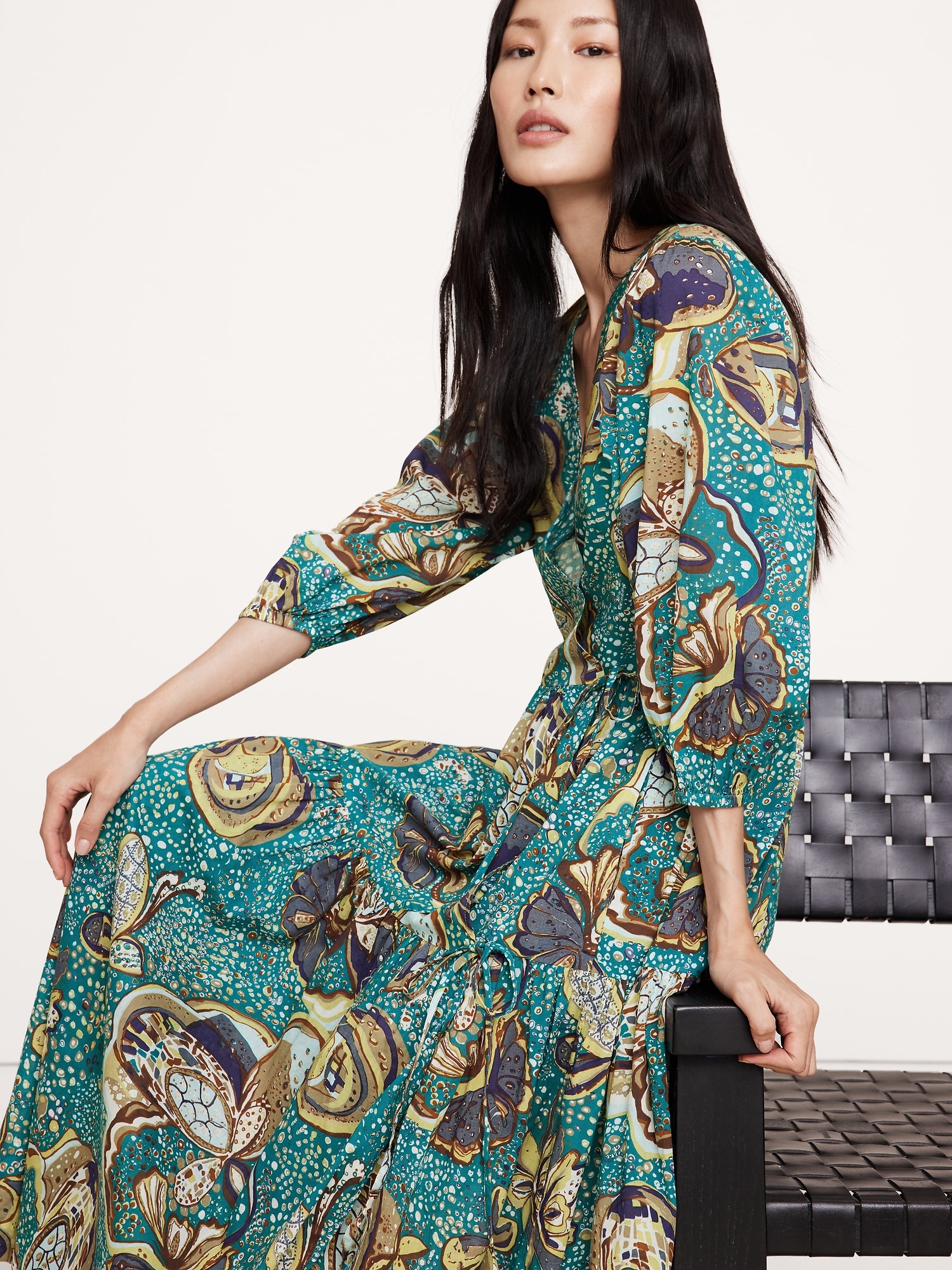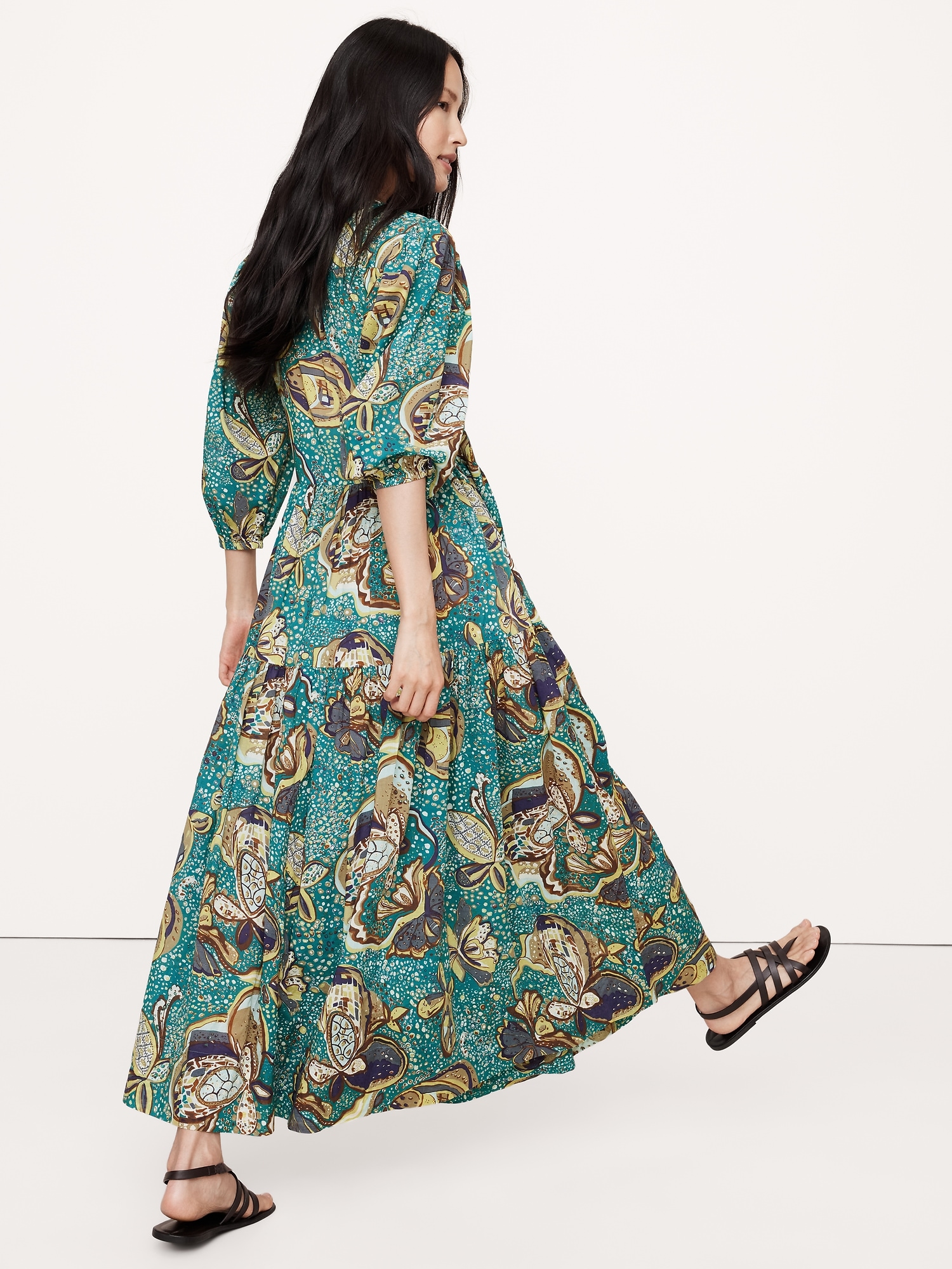 This tiered wrap dress is crafted in lightweight, silky cotton lawn so it’s ideal in hot, humid weather. Dress it up with heels and jewelry, or toss it on over your bathing suit and head to the beach.
