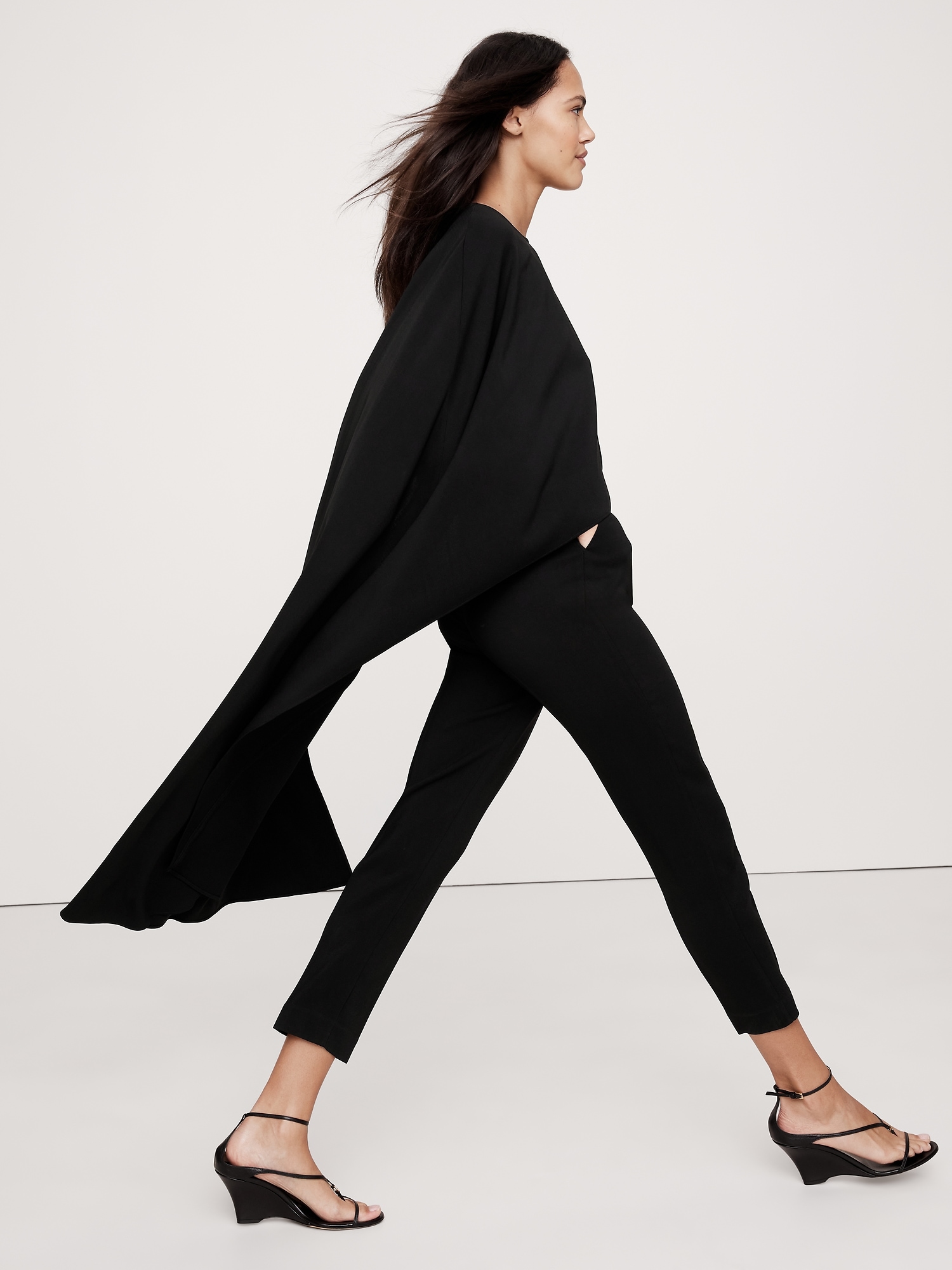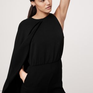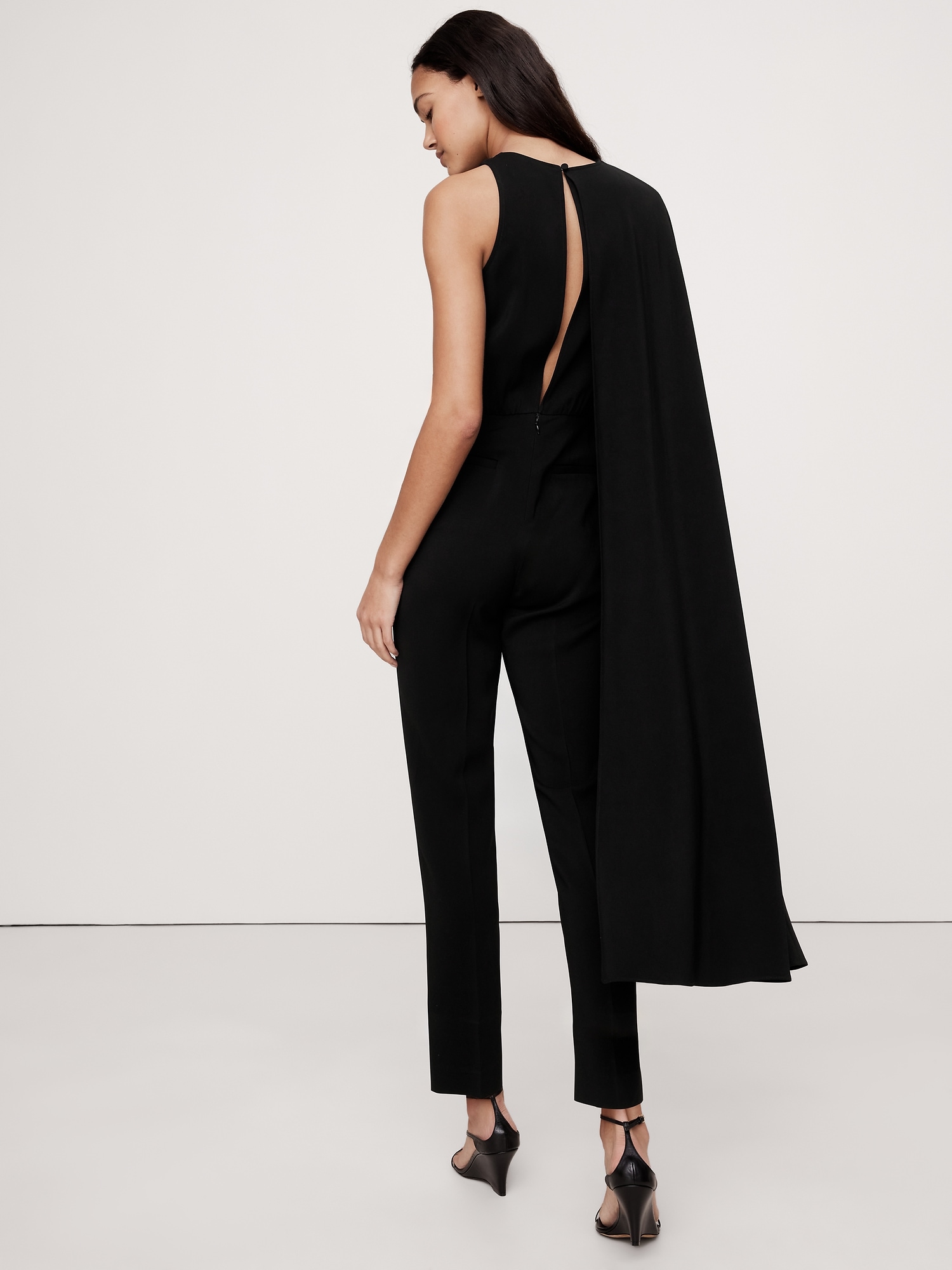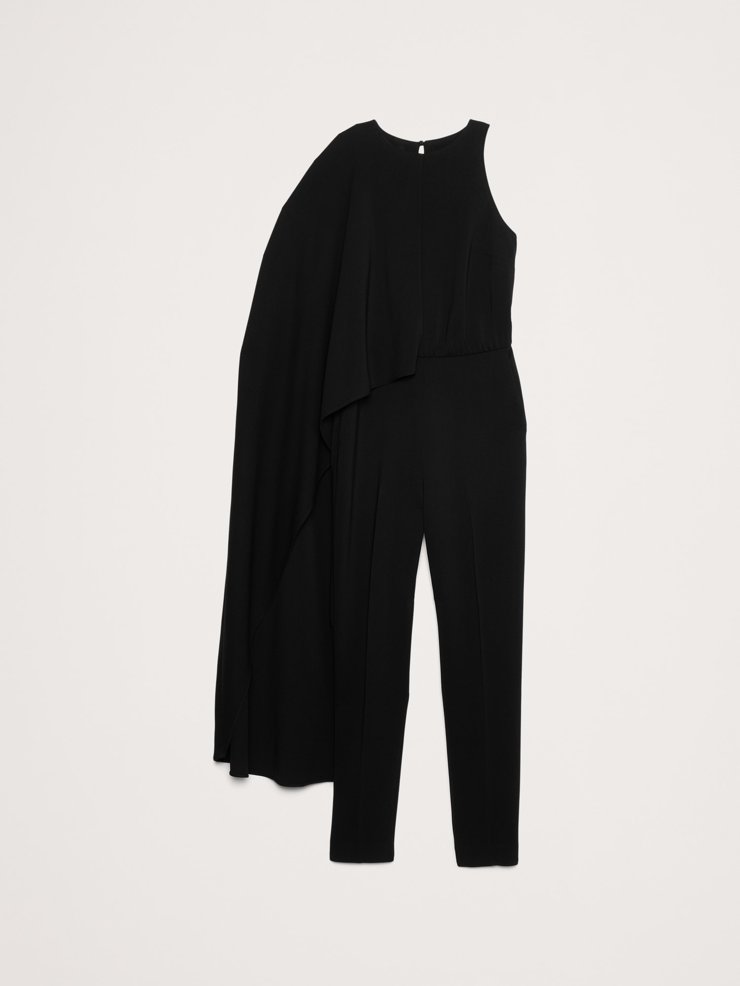 Crepe Cape-Shoulder Jumpsuit