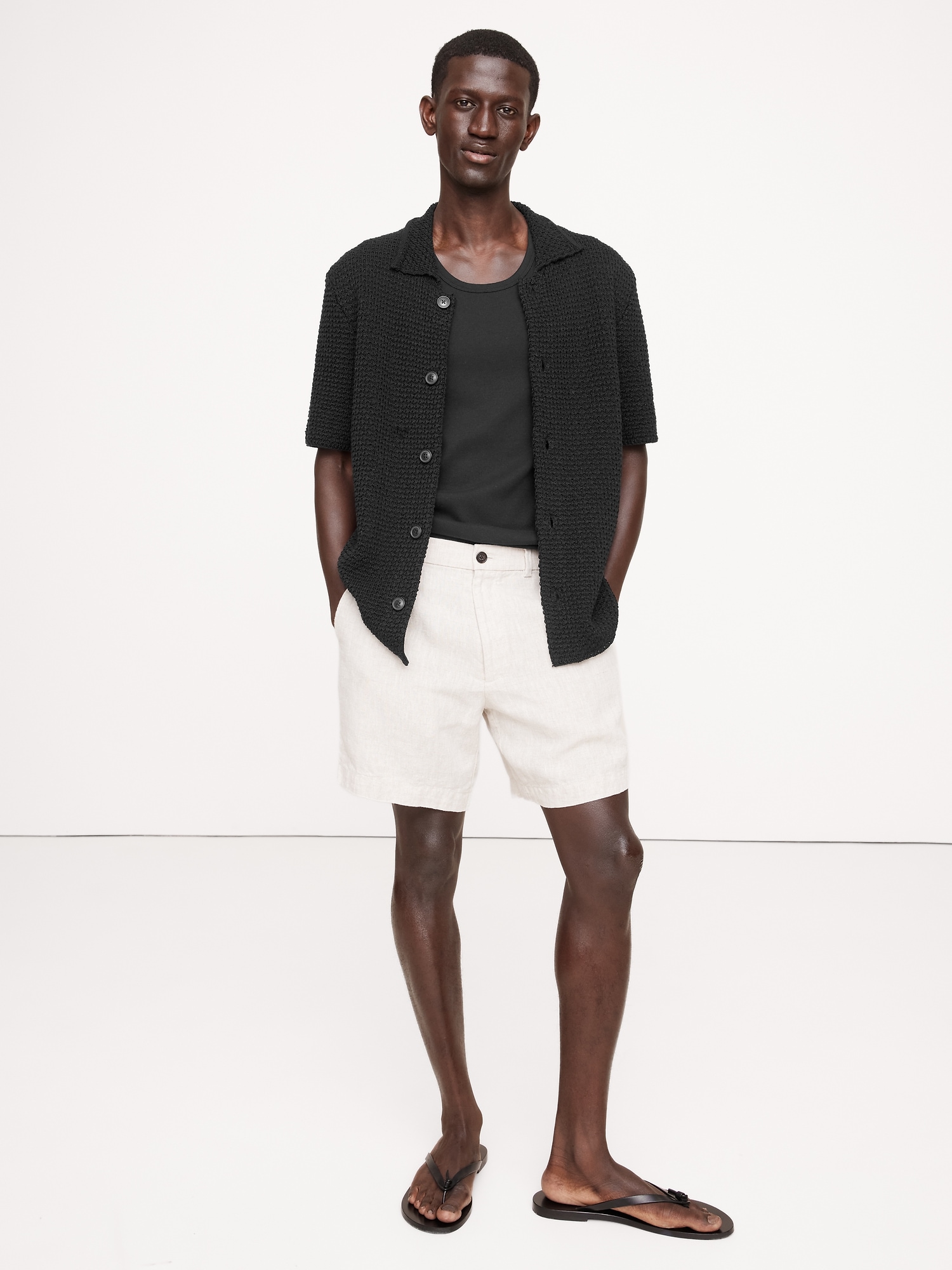 We wanted this shirt to capture the feel of the best handmade pieces so we chose a fabric that mimics the look of true crochet, in 100% certified-organic cotton. Pair with the matching shorts to make it a set.
