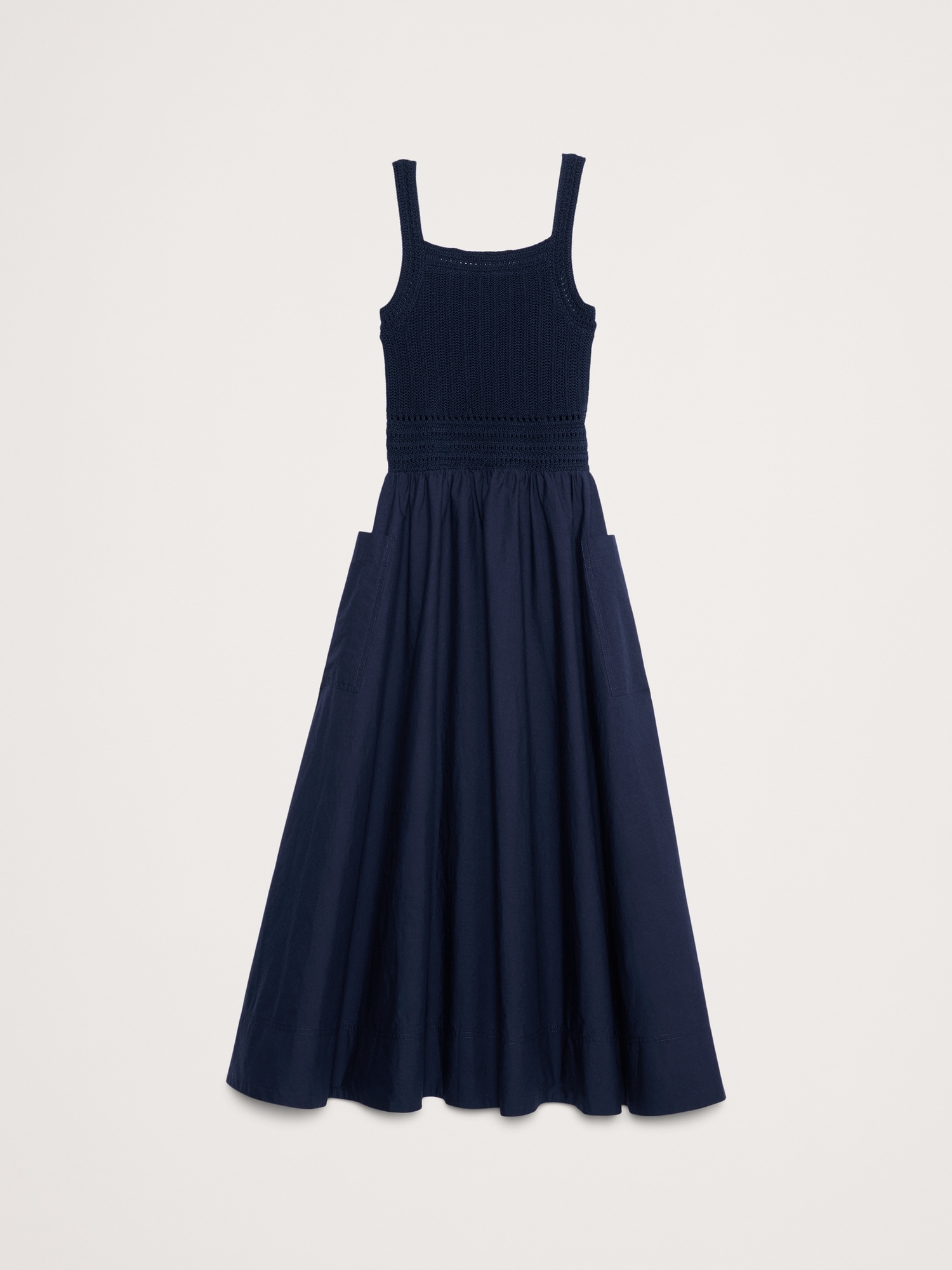 Crochet & Cotton Poplin Mixed-Media Midi Dress