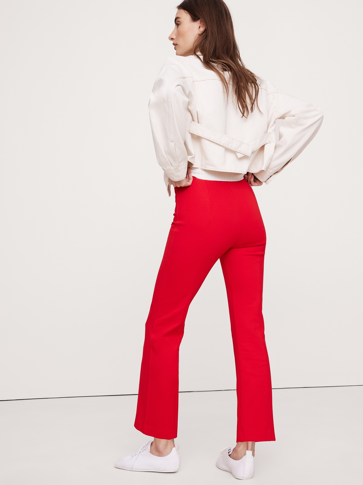 This kick-flare pant is cut from our Everywhere Ponte fabric—a favorite for its dressed-up look and high stretch for comfort. Plus, we added pintuck detailing, which adds a bit of structure and the look of a trouser crease.