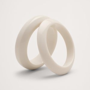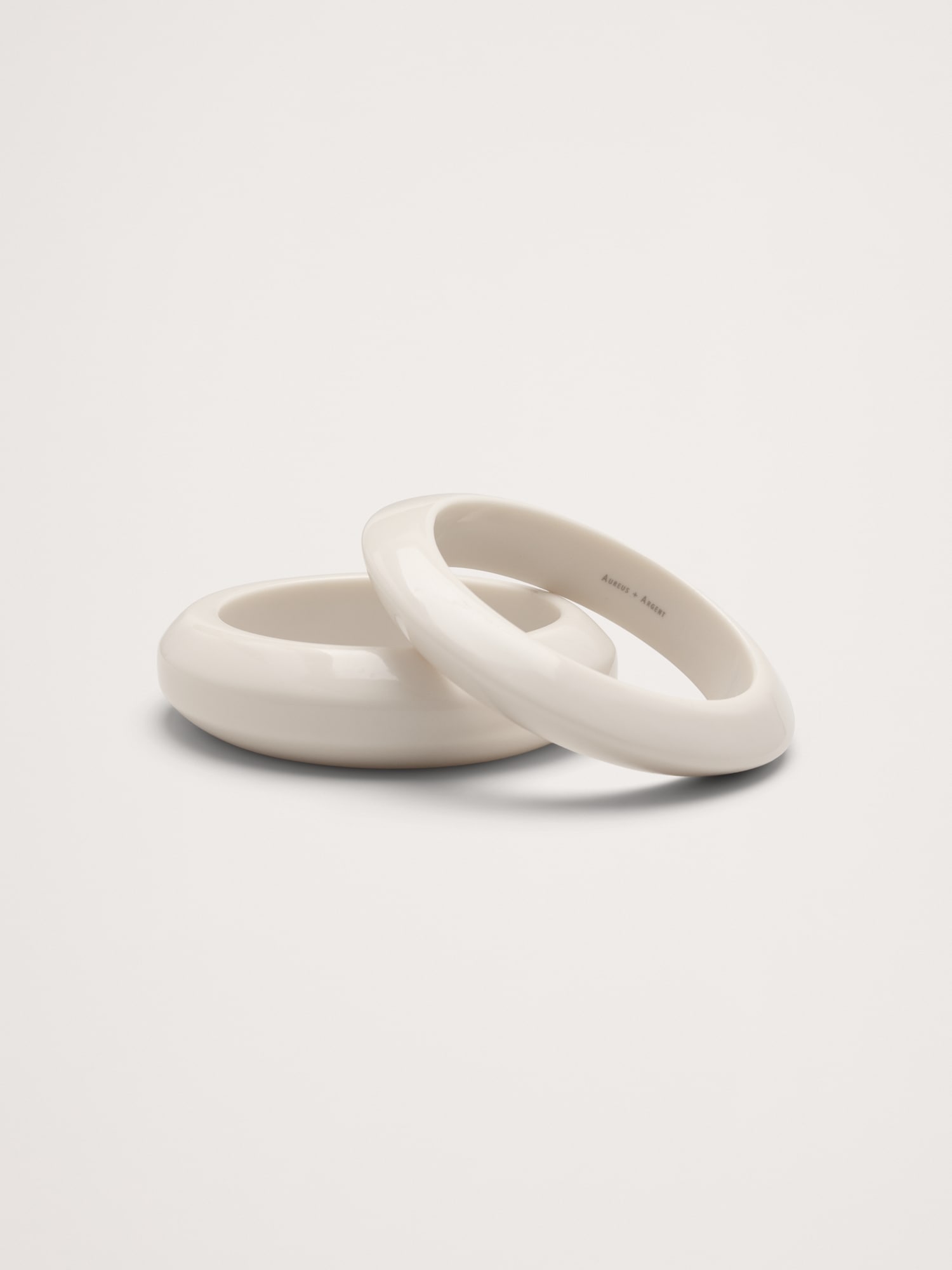 A sophisticated bangle pairing ideal for stacking in multiples is made from smoothly polished resin.