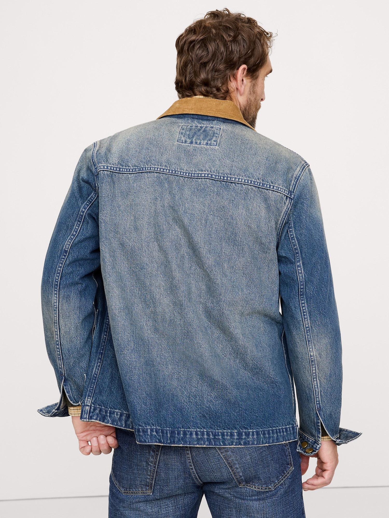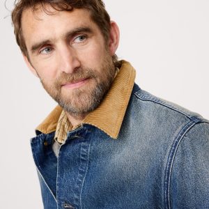 We a chore coat so we designed this one with a classic four-pocket design, corduroy collar, and a medium wash denim that looks as good as vintage.