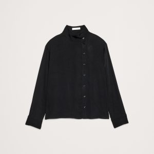 A classic button-down shirt with a twist. We offset the button placket and opted for a stand collar—leave it buttoned all the way up or unbutton a few for an asymmetrical neckline. Cut in our drapey twill so it’s a bit more dressed up.