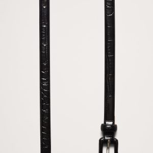 This skinny belt is designed to be worn at the hips and is made from leather embossed to mimic crocodile.