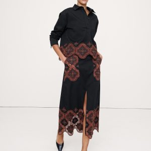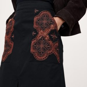 Embroidered Corduroy Midi Skirt