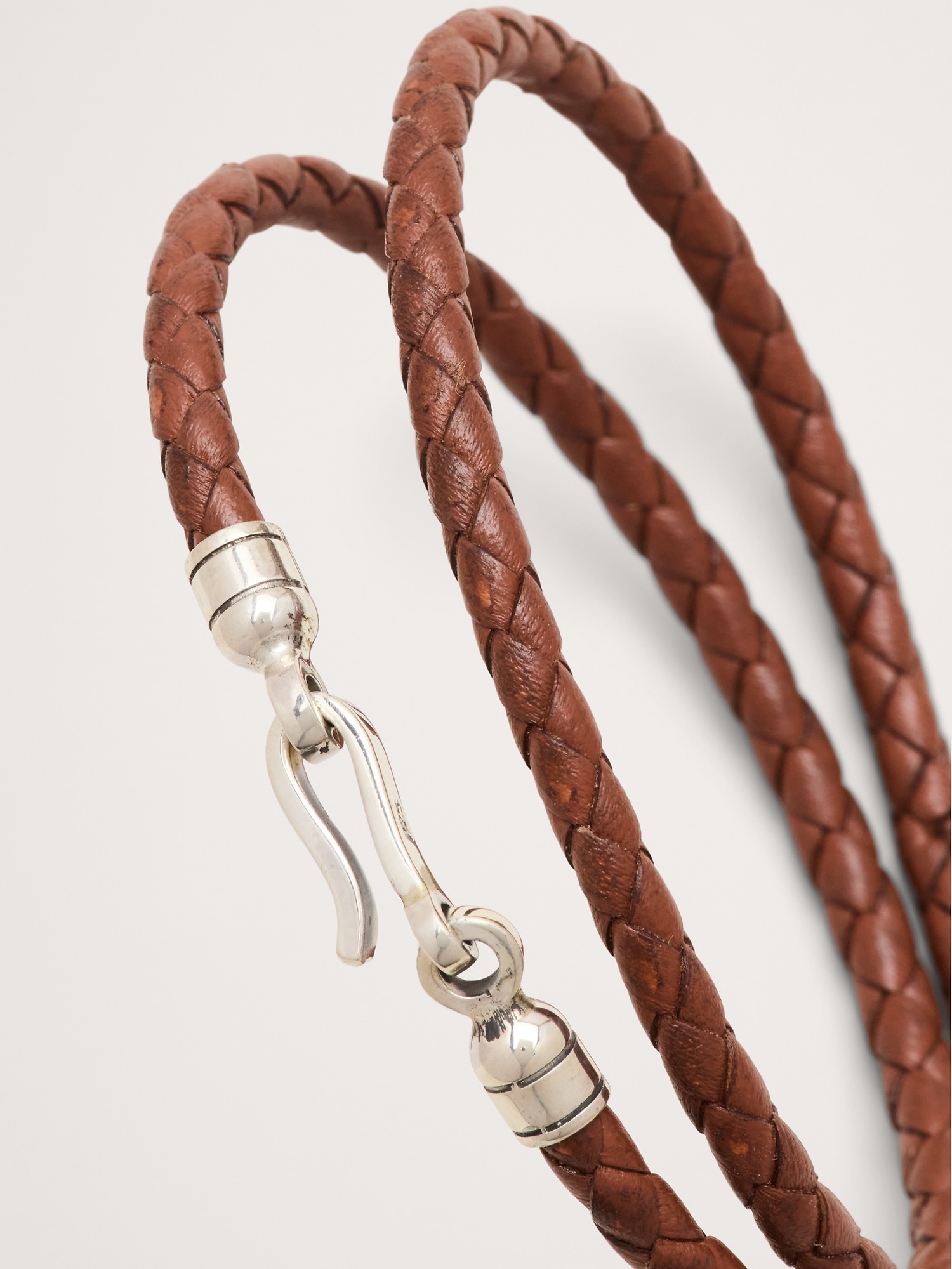 Braided vegetable-dyed European leather wraps twice around the wrist, finished with a sterling silver hook-and-eye closure