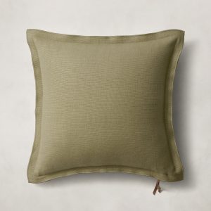 Luxe linen, garment-dyed for dimensional color. Expertly woven of fine linen, our pillow cover is specially dip-dyed for refined tonal beauty and accented with flanged details and a leather pull. Exposed zip closure and leather pull. Made in India. Pillow inserts are sold separately and are sized slightly larger than our pillow covers to create a fuller effect. #618737