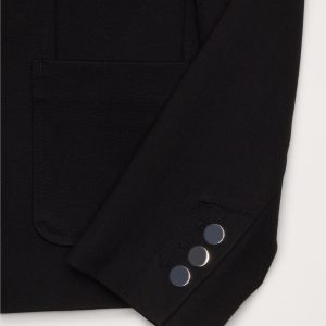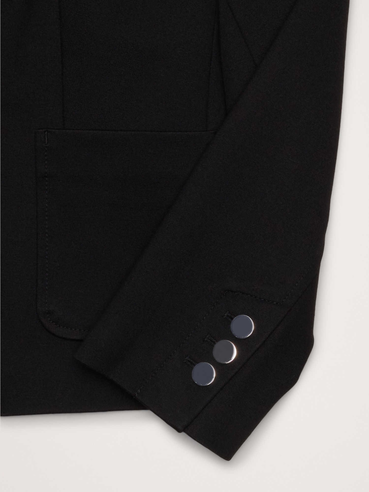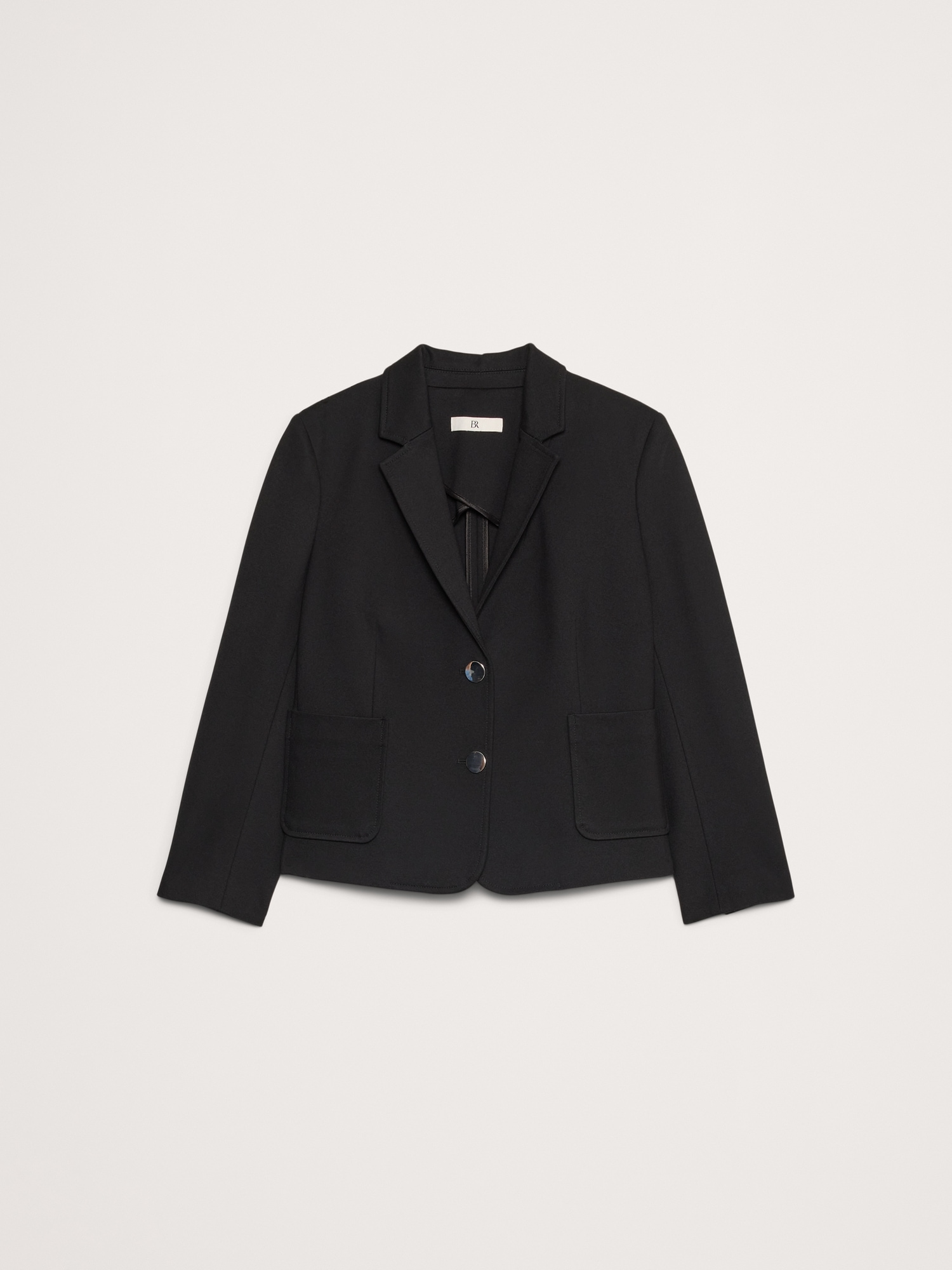 We cut this blazer in shrunken proportions using our Everywhere Ponte fabric—a favorite for its dressed-up look and high stretch for comfort. We added bracelet-length sleeves and small shoulder pads for a tailored silhouette, but opted for a butterfly lining at back.